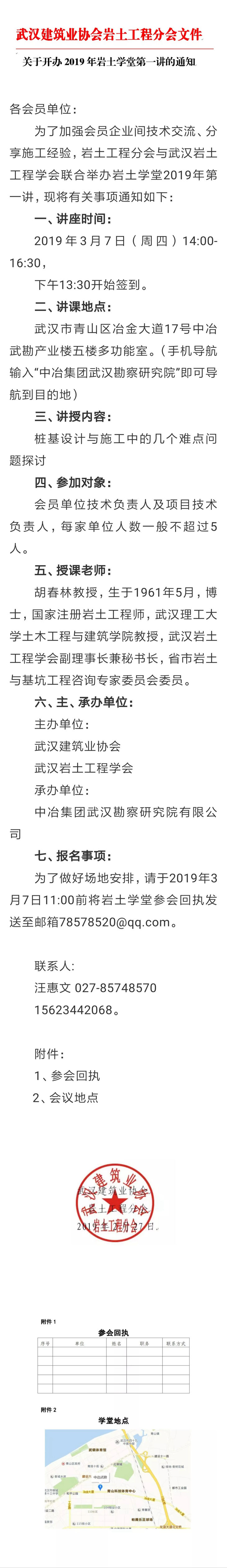 關(guān)于開辦2019年巖土學(xué)堂第一講的通知